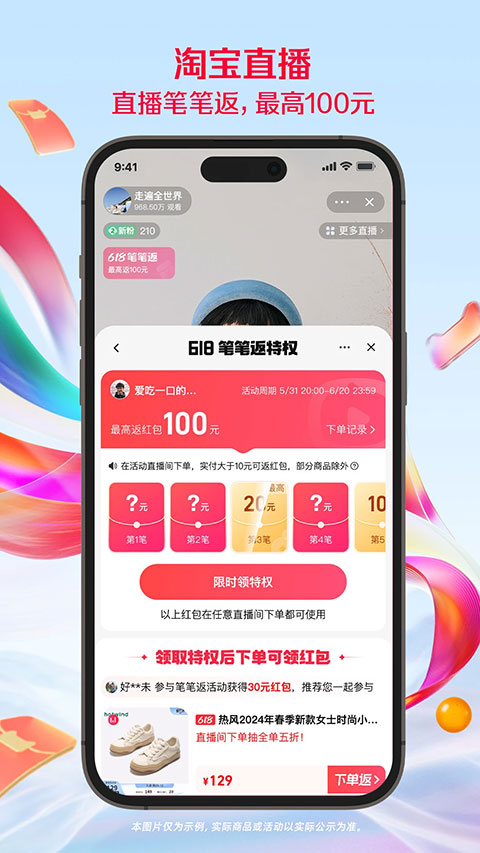 4、笔笔返:淘宝直播笔笔返,最高100元