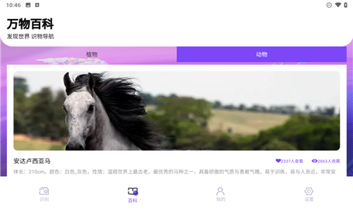 4、还可以进行百科的了解,了解各种百科知识,植物、动物、品牌、汽车想了解的都有。