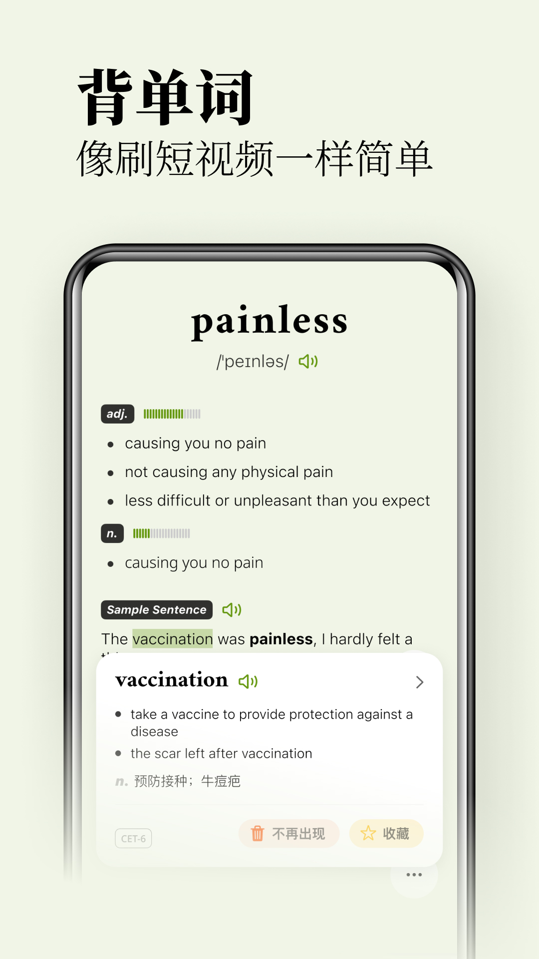 无痛单词给予用户更加容易接受的方式让用户背单词,没有强硬的学习计划,随心所欲的打开软件学习,毫无心理压力。