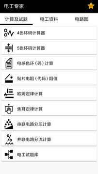 1、在6822本站下载安装并打开电工专家app,进入软件首页,为用户提供了各种计算及试题,各种欧姆定律,焦耳定律这里都有。