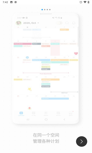 2、日程、任务、区间三类内容会分别以条状、待办、双向箭头的形式在日历中显示。