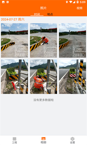 天气、经纬度、施工地点、工程名称、拍摄时间、备注等信息自由选择。