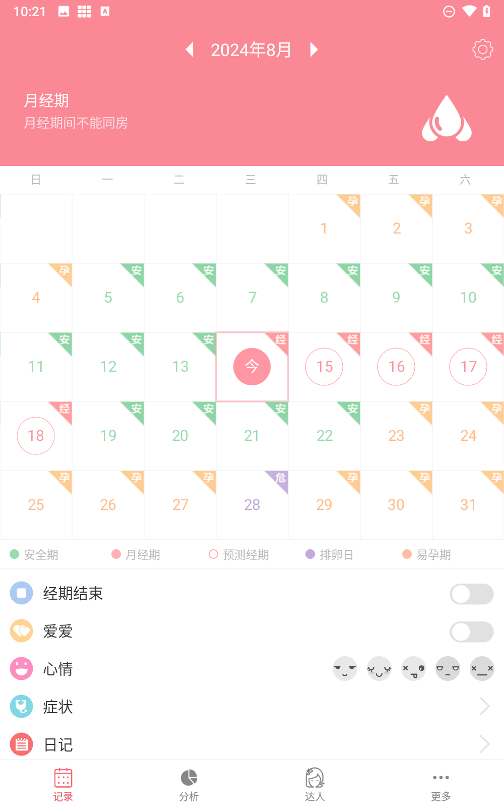 3、身体症状也能在此记录,月经流量、白带与发痛情况可以在此实时记录。