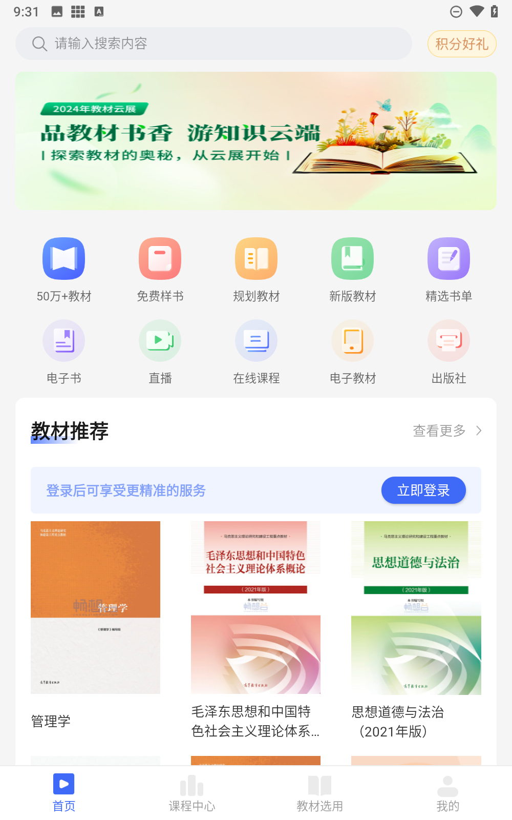 3、登录后,进入APP的主界面,寻找并点击“教材选用”或类似的选项,这将打开学生选书的界面。