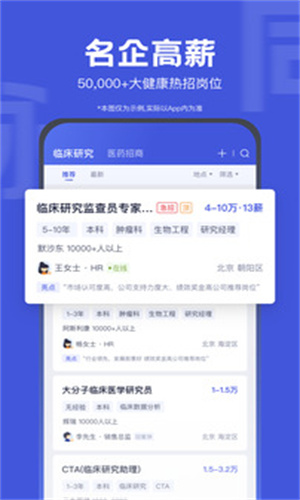 2万+大健康企业,5万+热招岗位,一线外企/大型国企/药代/商业/研发/生产/CMC/护士/医生。
