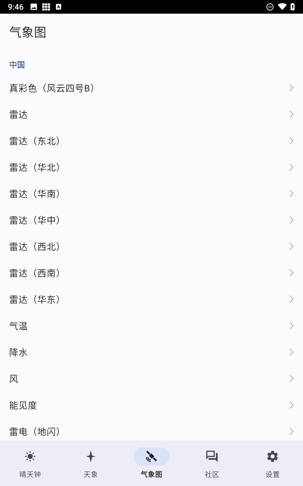 3、丰富的功能内容,点击查看全国实时的卫星云图。