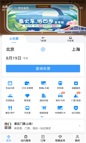2、随时随地购买火车票、退票,火车票数据来源12306官方网站,数据同步快速,及时、准确。
