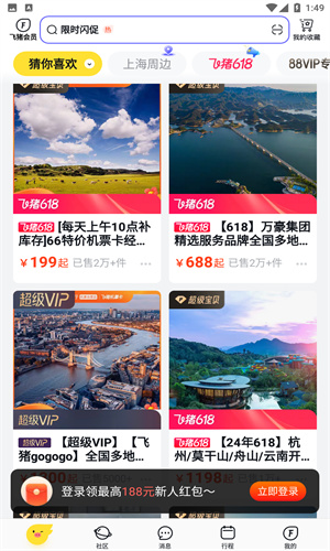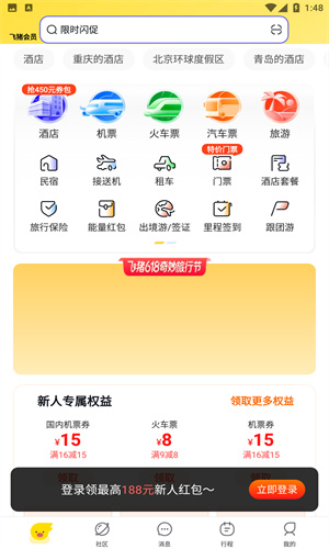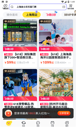 1、「新人大礼包」首次下载飞猪旅行App,即享百元出行大礼包。