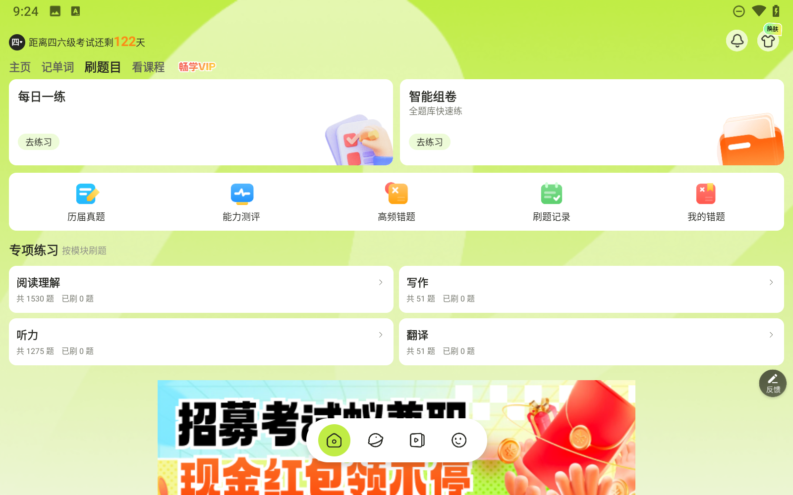 1、一次性获取全部四六级真题,内含视频精讲解析。