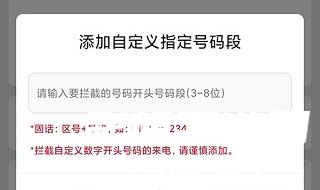 2、进入拦截页面,开启指定号码段;