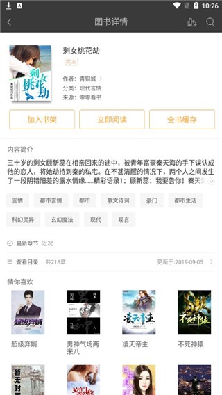 4、选择选择一款你喜欢的小说,然后进入,可以看到书本简介,点击立即阅读即可阅读;
