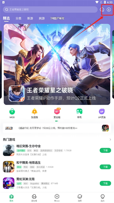 5、返回软件首页的界面中还可以通过右上角的下载图标处,找到当前所有游戏下载的进度条;