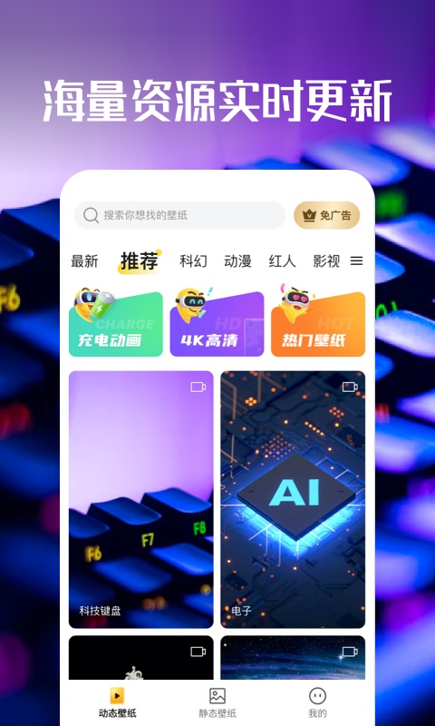 - 高清动态壁纸,资源丰富。