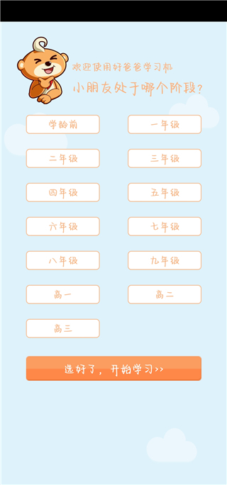 2、选择孩子当前所在的年级。