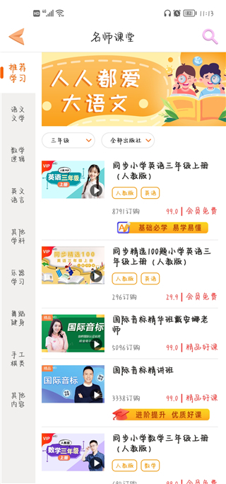 6、点击进入名师课堂,用户了可以在这里进行学习,这里有各种名师在线直播。