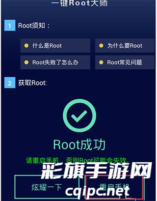 3、按提示点击开始root后,界面提示;