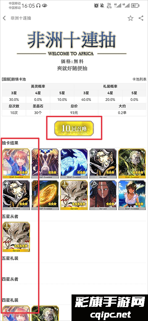 3、最后点击10回召唤按钮就可以抽卡啦,抽到结果也会在下方显示出来,另外如果向更贴近游戏还可以将右下角的动画、音效、BGM功能开启,能够更好的代入进去