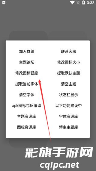 3、点击主题,选择主题资源,有修改图标弧度、秀海图标大小、提取当前字体等功能;