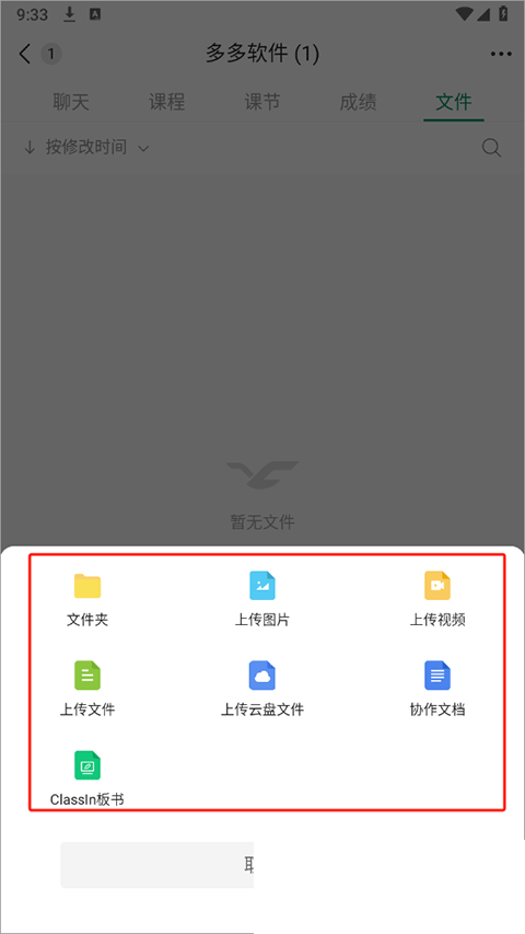 1、此功能仅限班主任使用,在班级中的文件界面内点击右下角+号