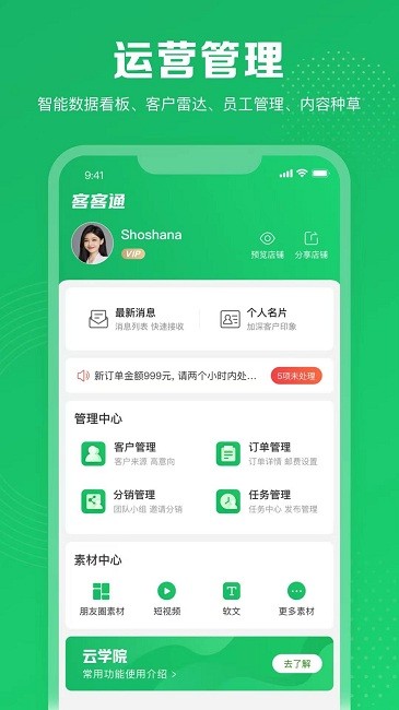 想要更加方便的去管理自己的门店,客客通就是一款比较好用的门店管理软件,可以帮助我们大家轻松的去管理,使用起来真的是非常的简单,绝对是大家不容错过的一款神器,能够更好的去进行管理,同时也提供了非常多的营销方式,可以及时的进行学习,为我们大家提供了极大的便利。
