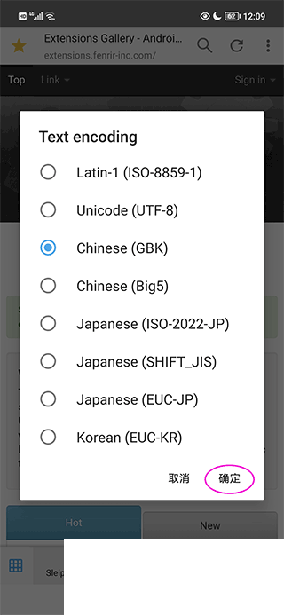 3、在弹出的选项框中选择“Chinese(GBK)”,点击确定即可。