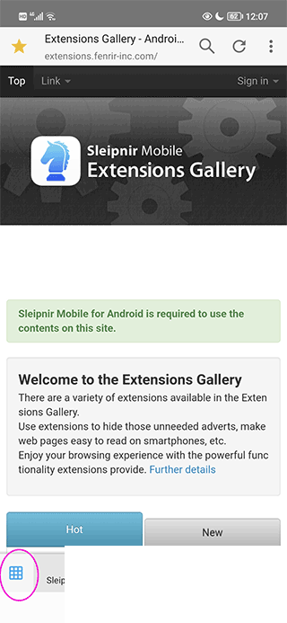 1、打开神马浏览器手机版,随意在某一个界面点击圆圈内的菜单键;