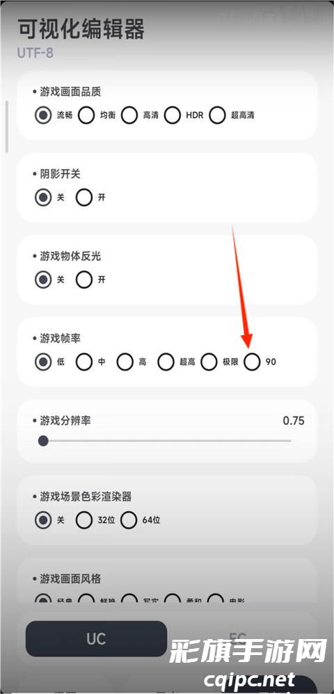 3、进入可视化编辑器还可以对游戏的帧率进行修改,比如解锁90高帧率