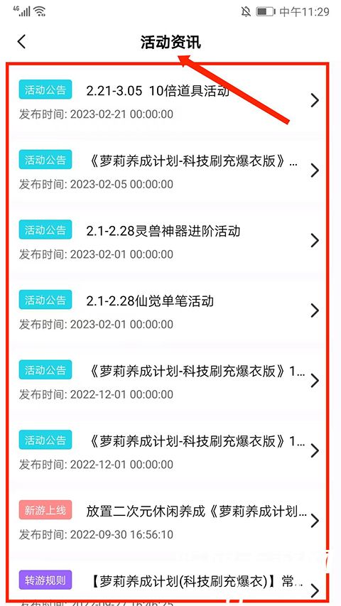 9、在【活动资讯】界面,可看到游戏的所有活动时间和公告,优先掌握游戏动态,