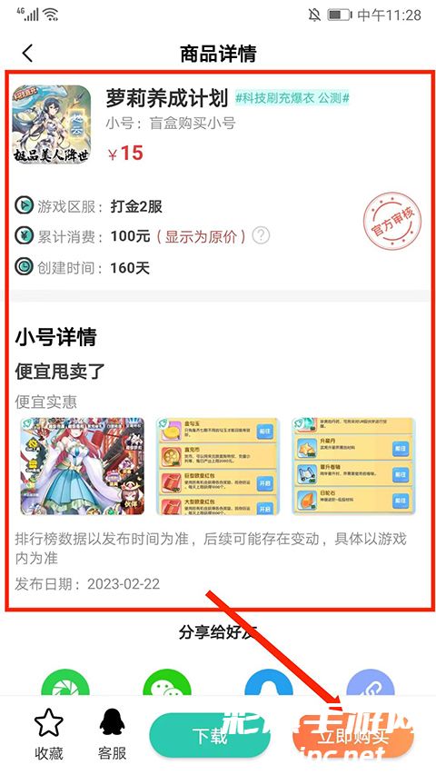 8、在【交易】界面,可看到游戏账号的详细情况,可选择需要的进行购买,