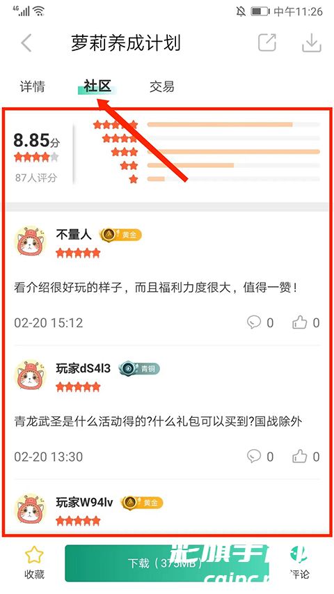 7、在【社区】界面,可看到真实玩家的留言分享,交流游戏心得,