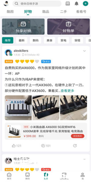 2、点击发现可以看见用户分享的商品内容,可以发表自己的评论。
