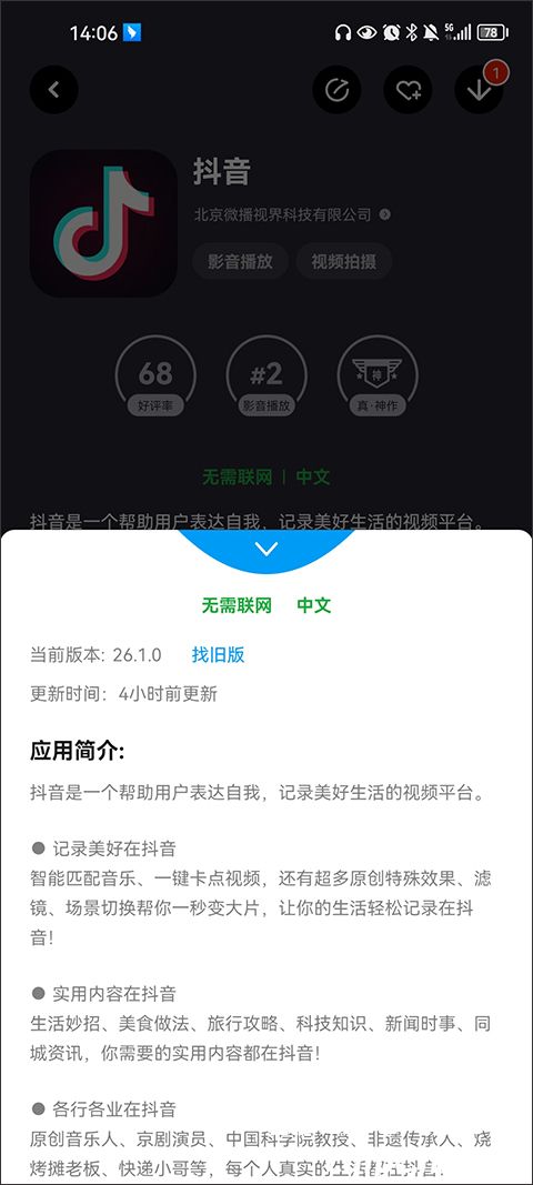 4、点击进入,即可看到抖音所有的历史版本,选择所需要的版本下载,并安装即可。