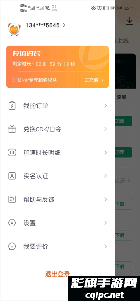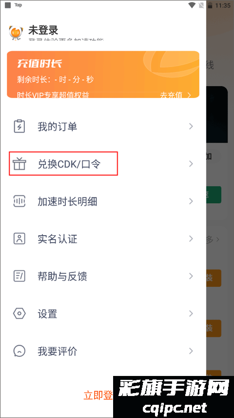 2、就自动进入到个人中心界面,在这里你会看到我的订单、兑换CDK/口令、加速时长明细、实名认证等功能,选择“兑换CDK/口令”。