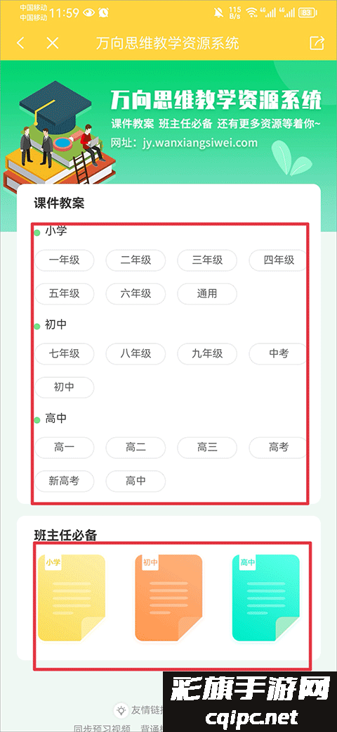 2、进入后选择你任职的年级,若是班主任的话可以在班主任必备中选择所在的年级资料