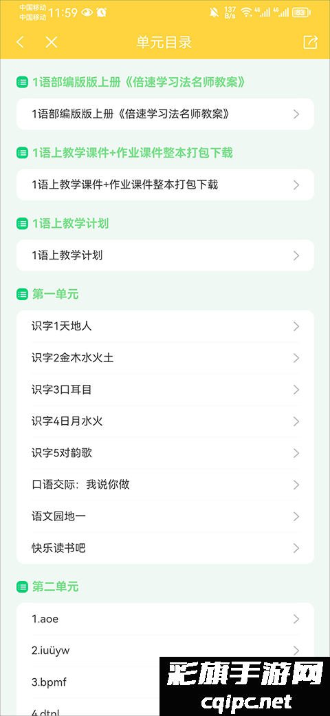 4、选择完成后就会进入该课本的单元目录中,你可以任意选择一个单元章节资料
