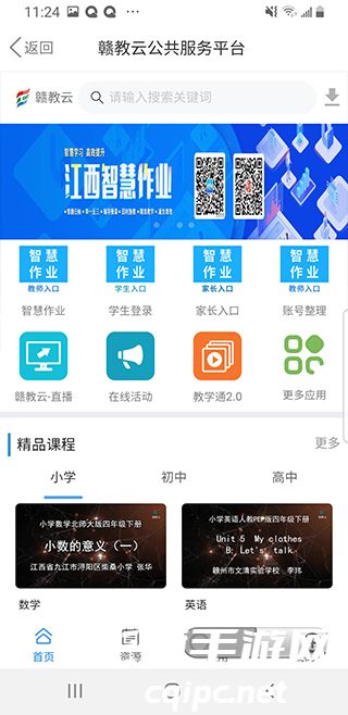 2、首页面如下,用户即可以查看智慧作业,赣教云直播等,还可以下载教学通2.0;