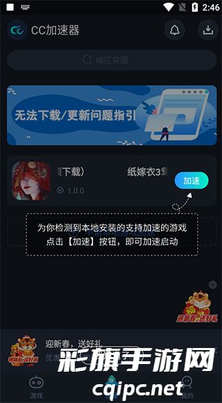 2、CC加速器不断改进和优化,提供更流畅的游戏体验。它将不断更新加速节点,优化加速算法,提高网速等方面,确保用户能够享受到最佳的游戏体验。