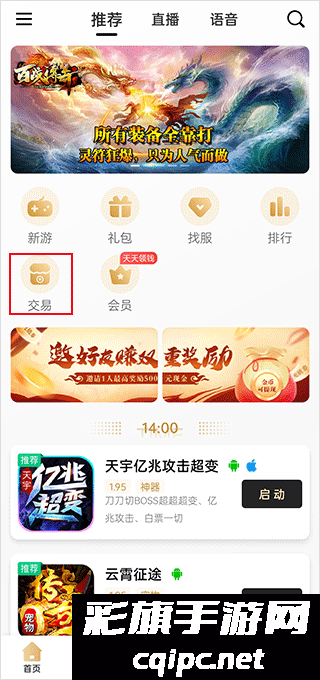 1、点击交易;