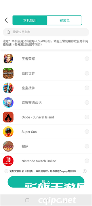 1、安装好想要导入的安装包后,打开ourplay然后进入到可以看到导入功能按钮。