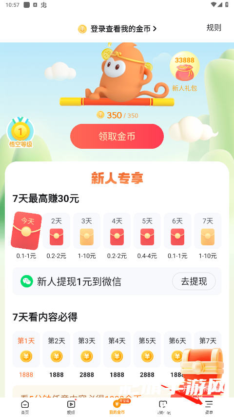 4、另外,登录后每日签到和观看视频还可领取红包体现到微信哦。