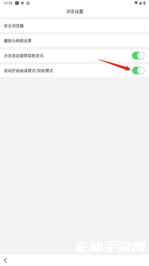 4、打开自动阅读模式或者观影模式。