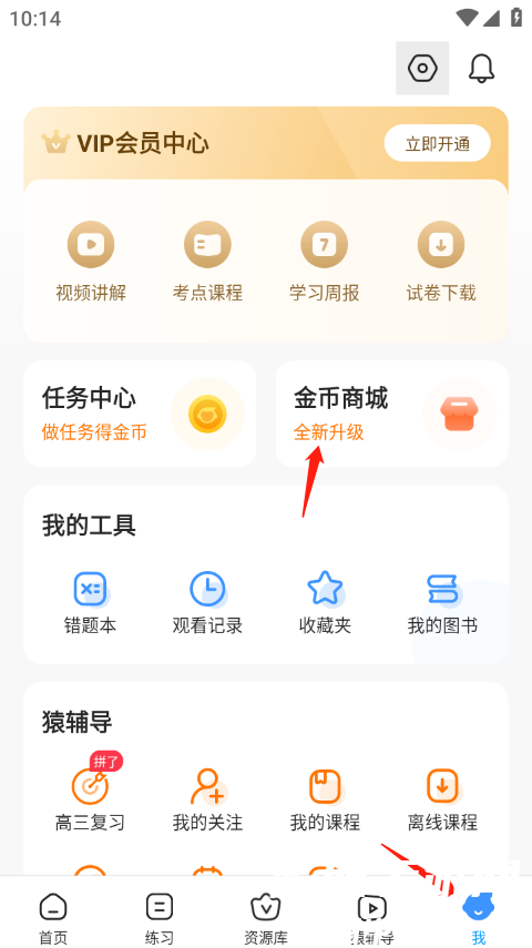 1、首先打开app进入我的界面,点击金币商城全新升级。