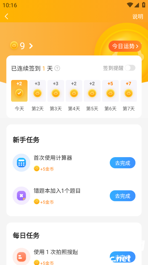 3、接着在这里做任务和签到即可赚取金币。