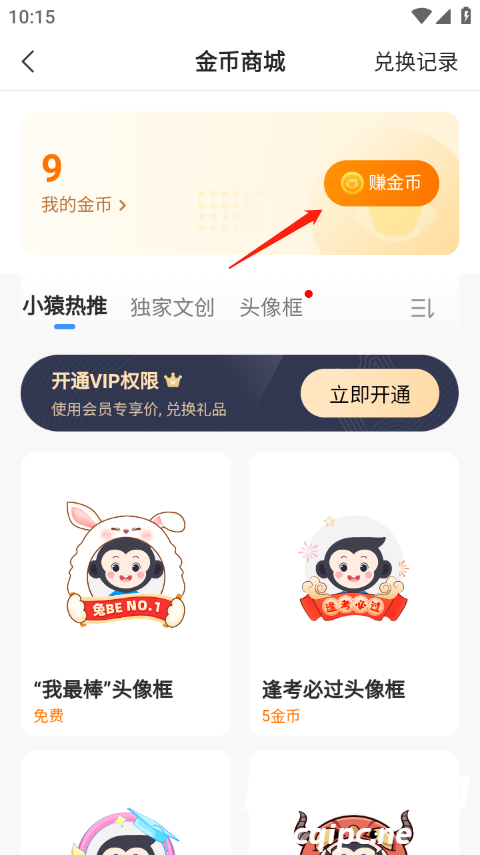 2、然后点击赚金币。