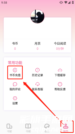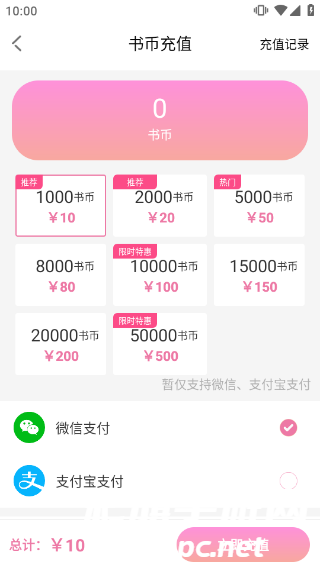 5、在此即可充值书币,充值兑换比例为1元=100书币