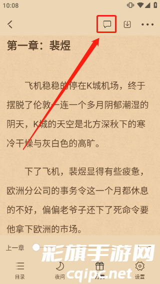 5、进入小说阅读界面,点击下图所示位置