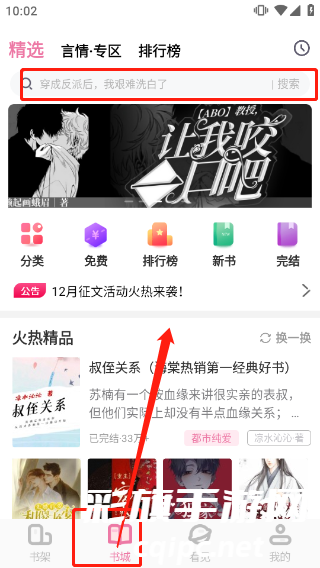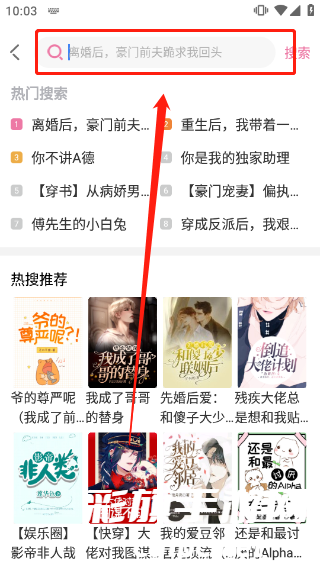 2、点击上方检索栏即可搜索各种关键字,可包含小说名称、作者名称或别称