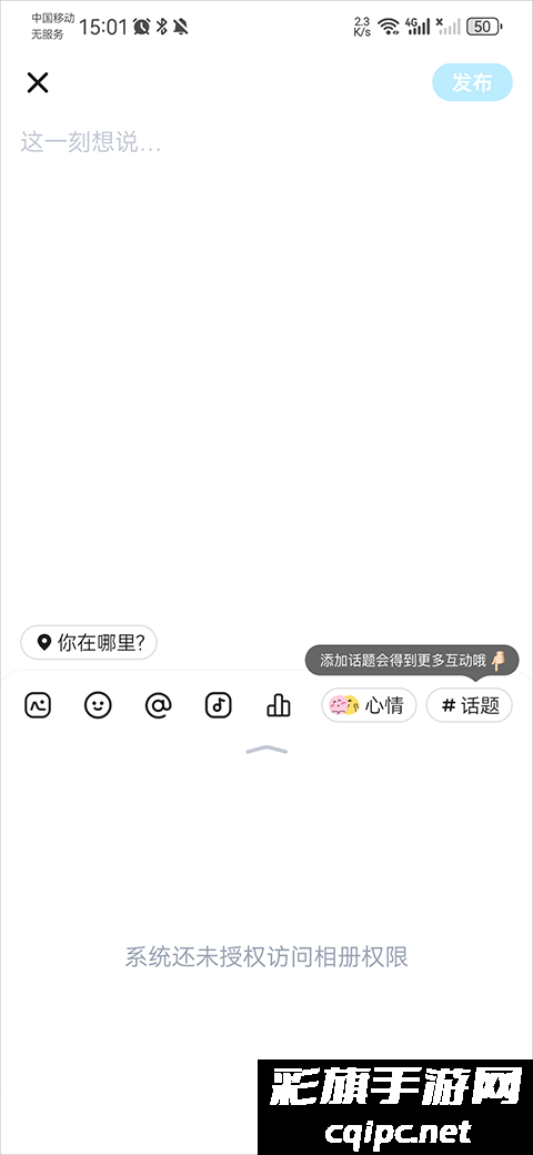 2、将内容输入后,你还可以添加图片、表情、音乐、话题等等,完成后点击发布即可