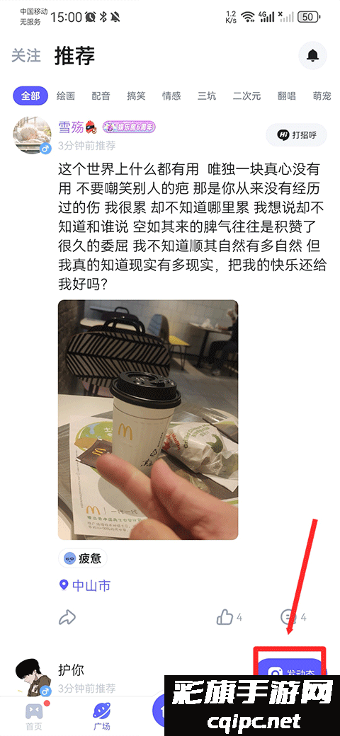 3、广场动态:即时分享有趣的生活,感受别人的生活,来这里遇见有趣的灵魂。