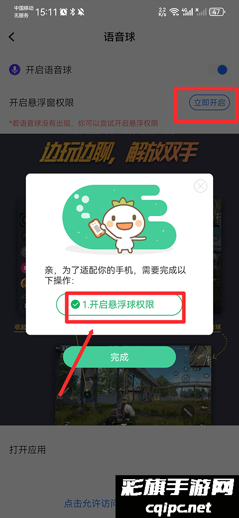 3、进入后先点击立即开启,再点击开启悬浮球权限功能